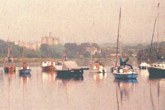 Early morning, slightly misty, Warkworth Castle from Amble, Northumberland